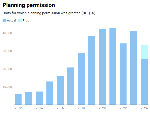 Planning permissions are another way of exploring this. While the uncertainty brought on by the pandemic would have dampened supply somewhat, planning permissions could more easily have been applied for.